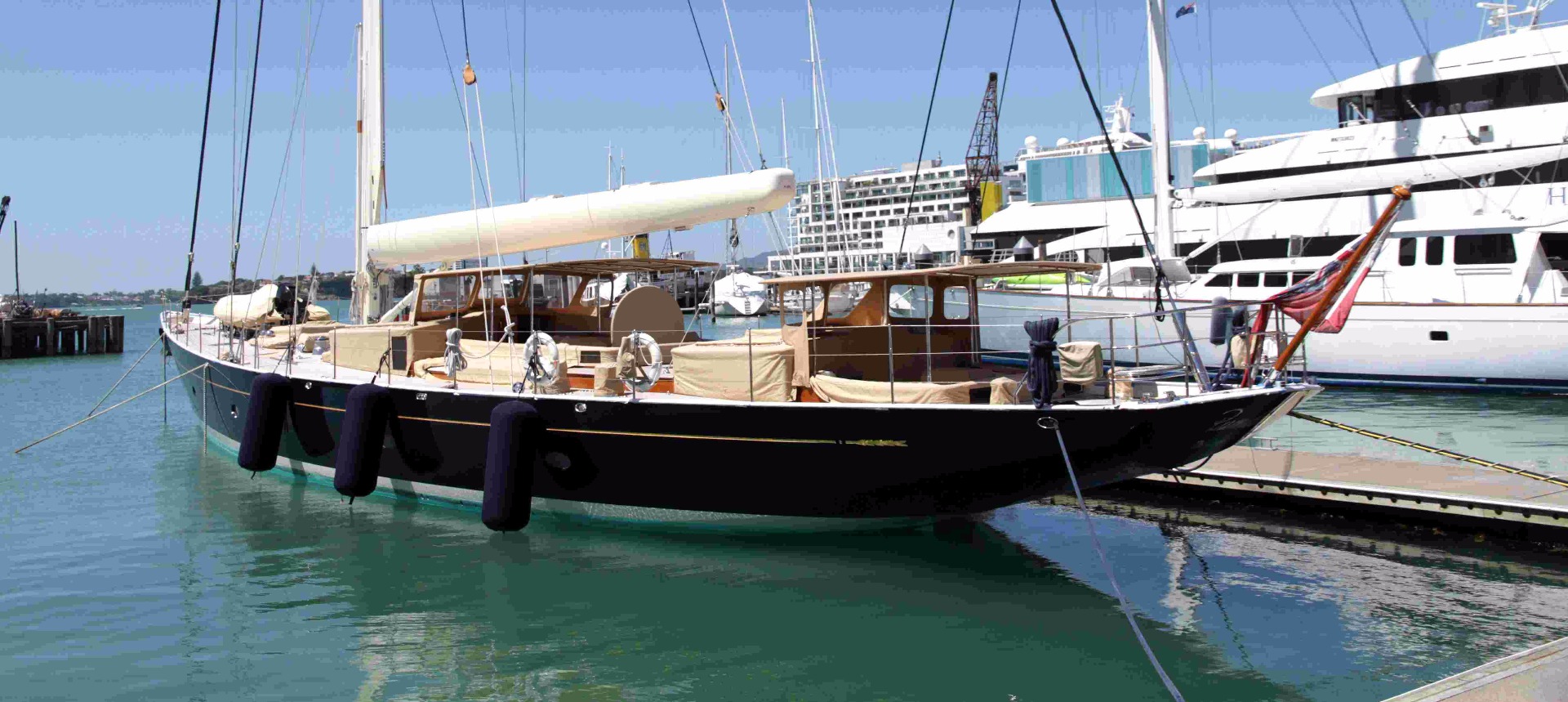 Un réveil très tôt pour prendre l'avion vers Auckland. Un dernier tour de ville, surtout du port avec quelques magnifiques bateaux.